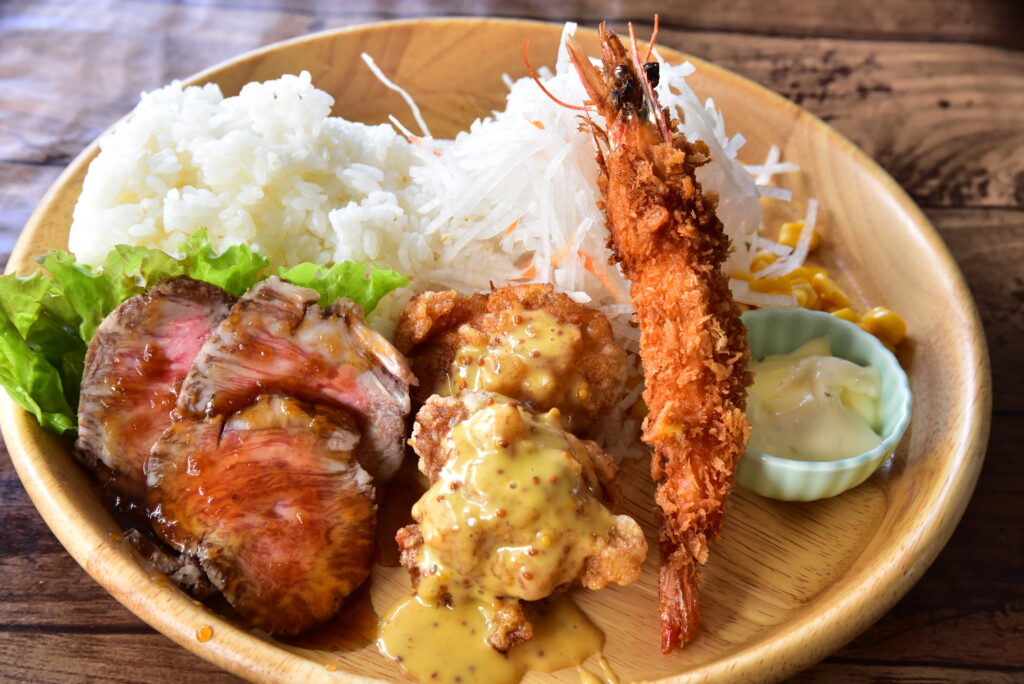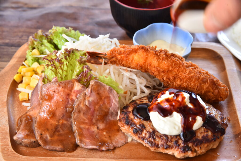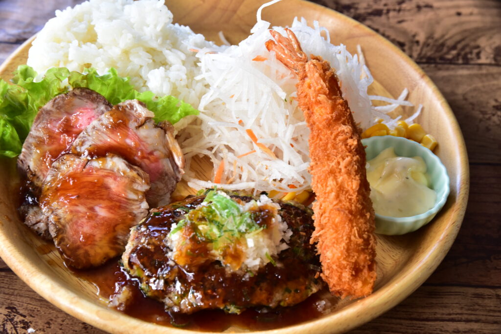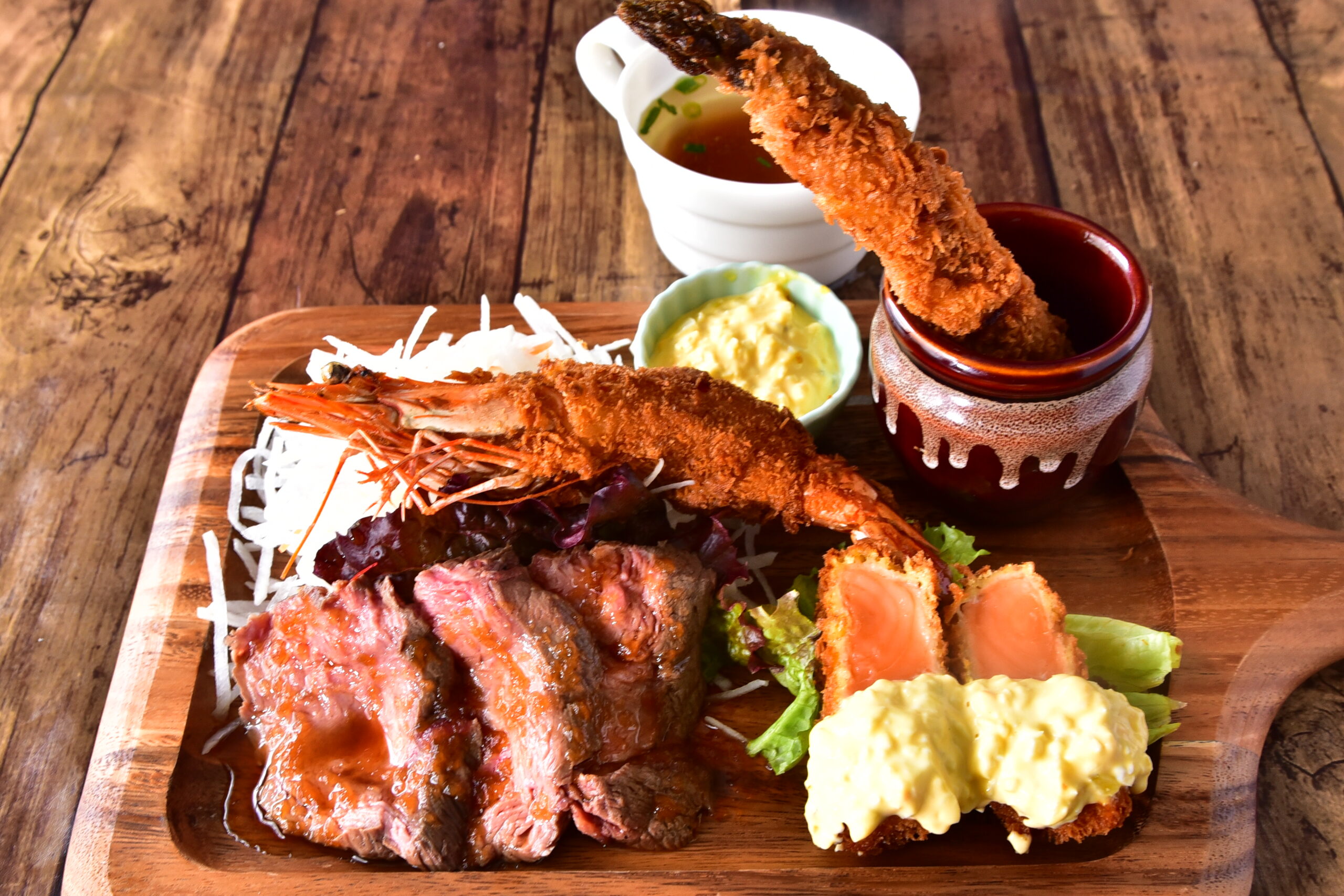 黒毛和牛特上ロースステーキ・特大エビフライ